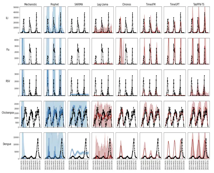 Epidemic forecasting and policy evaluation rely on mathematical models to predict infectious disease trends and assess the impact of public health policies. Traditional models typically require extensive epidemiological data and may struggle in data-limited settings. Transformer-based, foundation AI models have demonstrated strong predictive capabilities in various time series applications. We investigated whether they can be the basis of a new epidemic modeling framework. We evaluated five foundation models - TabPFN-TS, TimeGPT, TimesFM, Lag-Llama, and Chronos - across diverse pathogens, diseases and locations, including influenza-like illness, RSV, chickenpox, dengue, COVID-19 and neonatal bronchiolitis. Models were tested for long-term forecasting (multi-season predictions), short-term forecasting (four-week-ahead predictions), and epidemic peak timing estimation. We also assessed their ability to generate counterfactual scenarios in policy evaluation, using COVID-19 restriction measures in Italy, RSV immunization in France, and synthetic epidemic data as validation. Foundation models demonstrated strong predictive accuracy, possibly outperforming traditional statistical and mechanistic models in data-limited contexts. They generated multi-season forecasts and short-term forecasts with good accuracy and stable uncertainty. They gave reliable peak timing estimates months before the actual peak. In policy evaluation, TabPFN-TS accurately estimated intervention effects, matching estimates from an independent epidemiological study. Our findings suggest that foundation models can complement existing approaches in epidemic modeling. Their ability to generate accurate forecasts and counterfactual analyses with minimal data input highlights their potential for real-time public health decision-making, particularly in emergent and resource-constrained settings. Further research should explore domain-specific adaptations to optimize performance for infectious disease modeling.